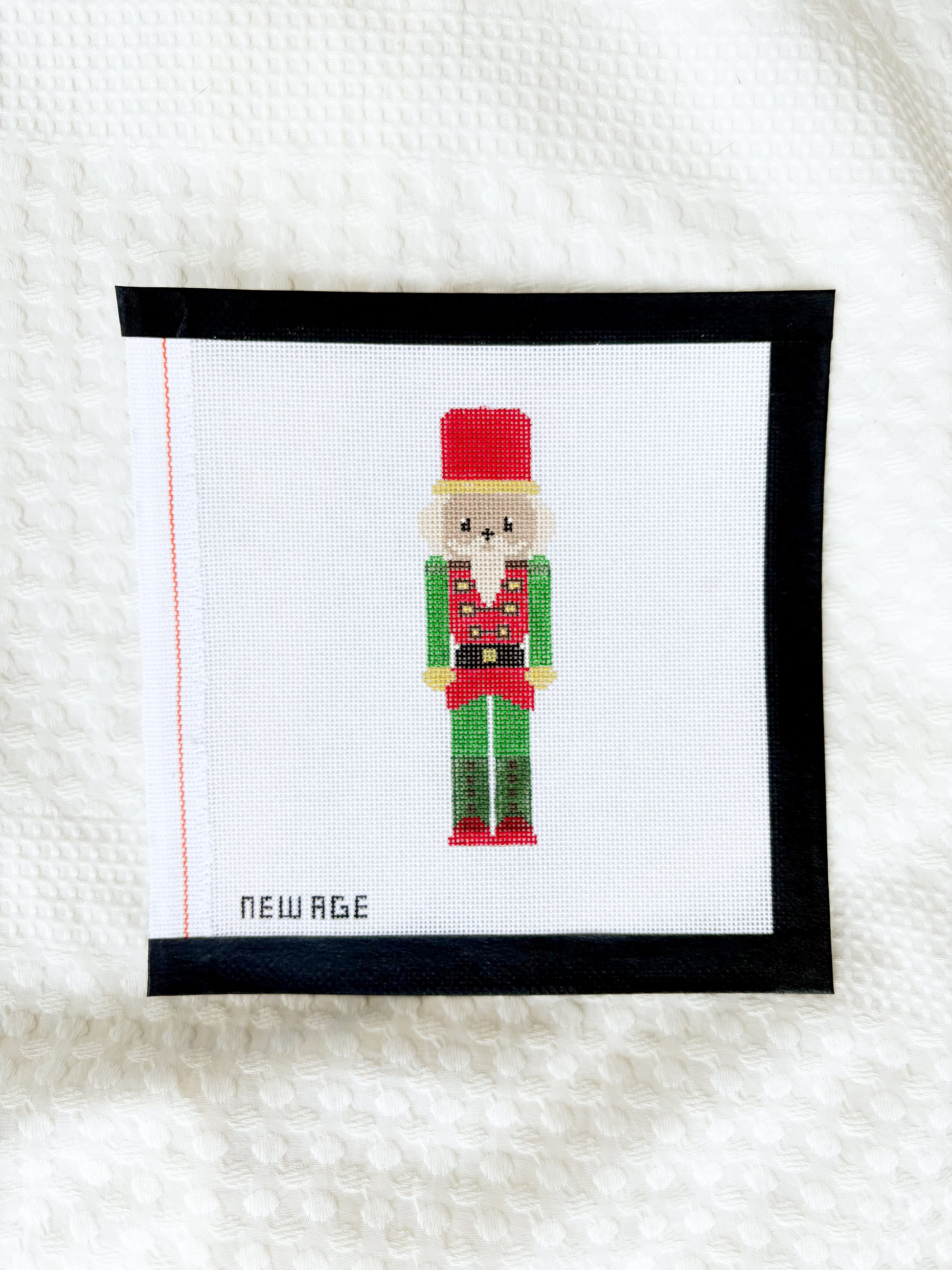Bring a pop of festive charm to your holiday stitching with this whimsical Nutcracker needlepoint canvas! Hand-painted with care and detail, this cheerful soldier features a bright red hat, green uniform, and classic toy soldier styling that captures the magic of the season.