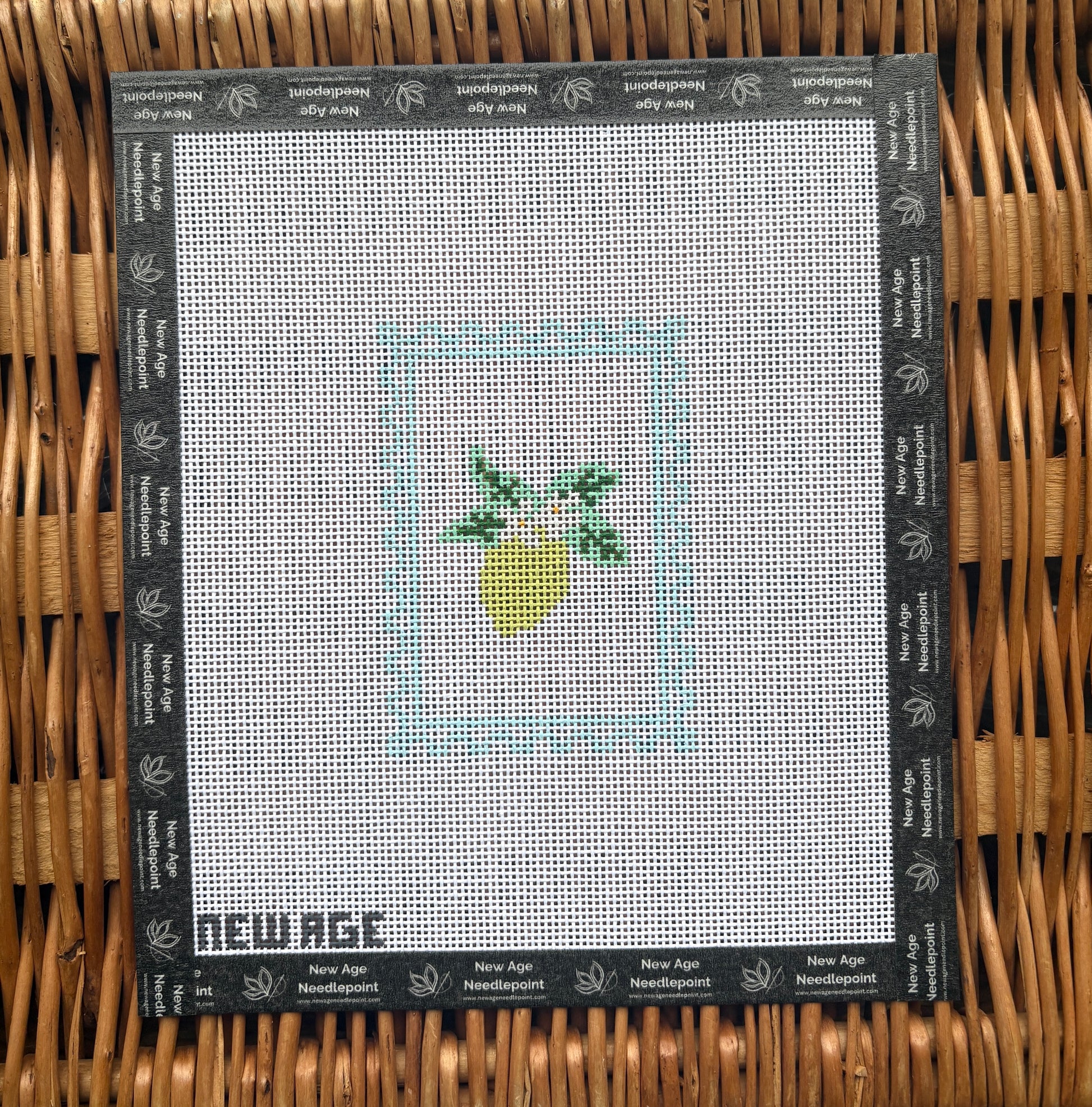 Freshen up your next project with this vibrant lemon motif framed by a green geometric border. Hand-painted on 18 mesh mono deluxe canvas, this design brings a classic citrus twist to your stitching.